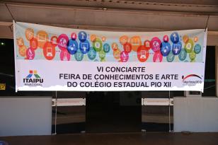 13:50 Colégio Estadual Pio XII realiza VI CONCIARTE - Feira de Conhecimentos e Arte Colégio Estadual Pio XII, recebe patrocínio da Itaipu Binacional para realização da ação: Realização de Oficinas de Formação e da VI CONCIARTE - Feira de Conhecimentos e Arte