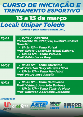 16:08 Núcleo Regional de Educação de Toledo Celebra 40 Anos O Núcleo Regional de Educação de Toledo celebrou no último dia 19 seus 40 anos de história com um jantar especial.