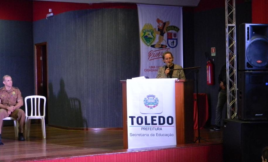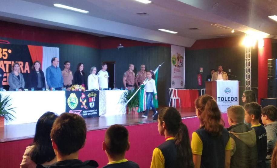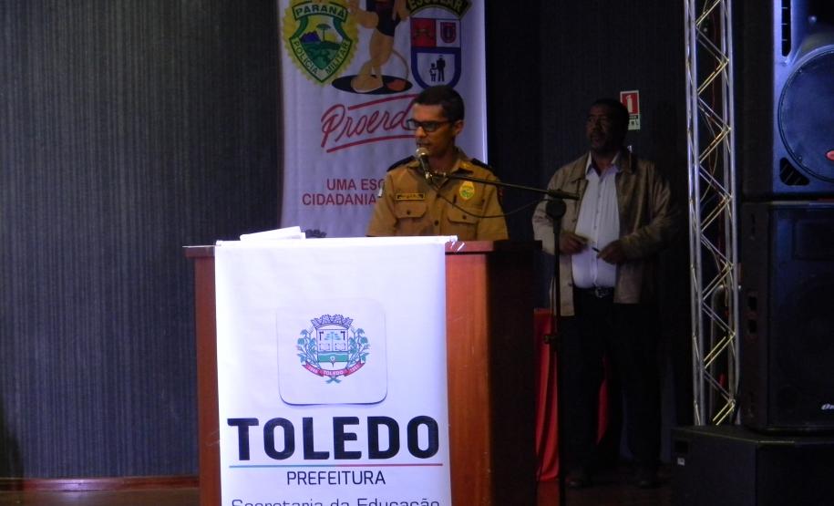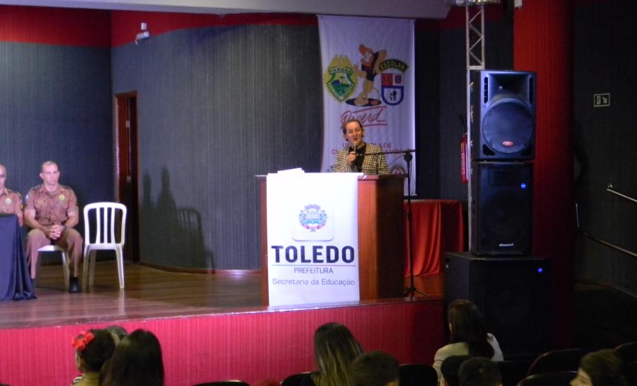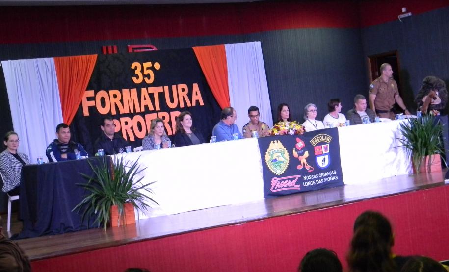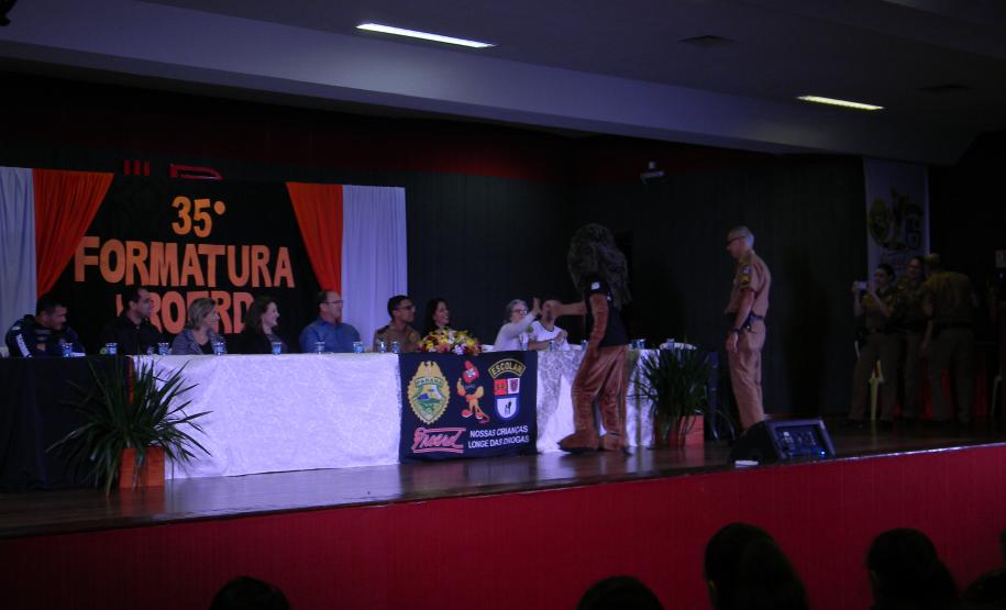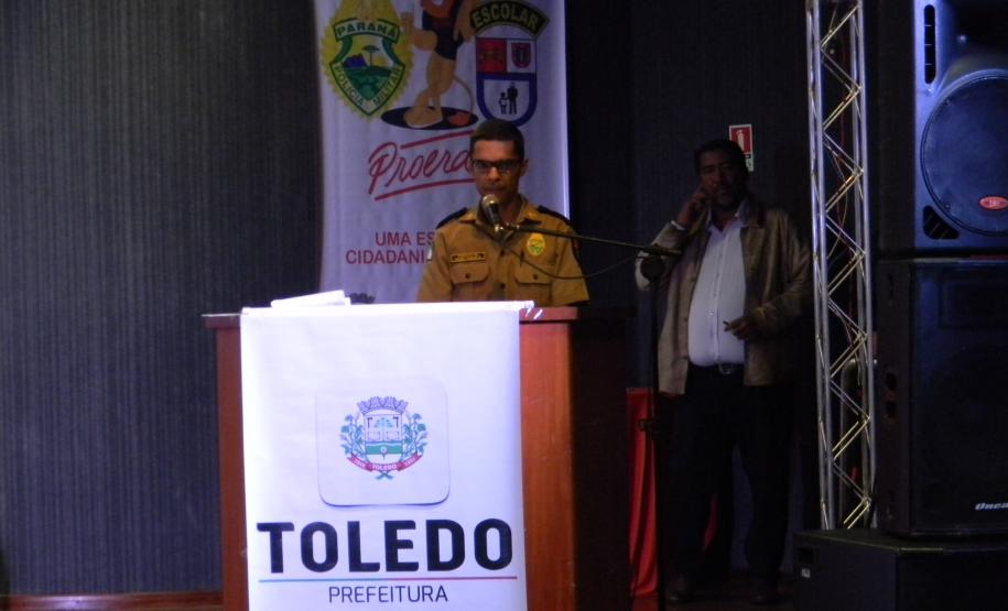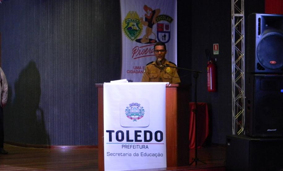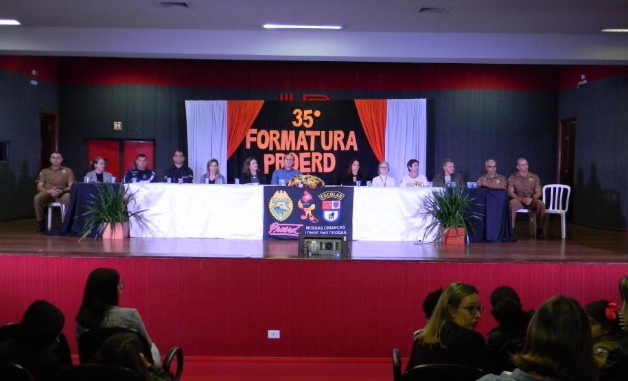 Nessa quarta-feira dia 26 de junho, no auditório da Universidade Paranaense de Toledo, ocorreu a 35ª cerimônia de formatura do Programa Educacional de Resistência à Drogas e à Violência. O evento reuniu turmas do 5º ano de diversas escolas municipais de Toledo, com a presença de autoridades como o Prefeito Municipal Lucio de Marchi, a Secretária Municipal de Educação Edna Heloisa Schaeffer Amaral, a Vereadora Janice Salvador, autoridades do Judiciário, do Legislativo, representantes da Polícia Civil, do Núcleo Regional de Educação, da Delegacia de Mulheres, além de todo o Corpo Militar do 19º Batalhão de Polícia Militar de Toledo.