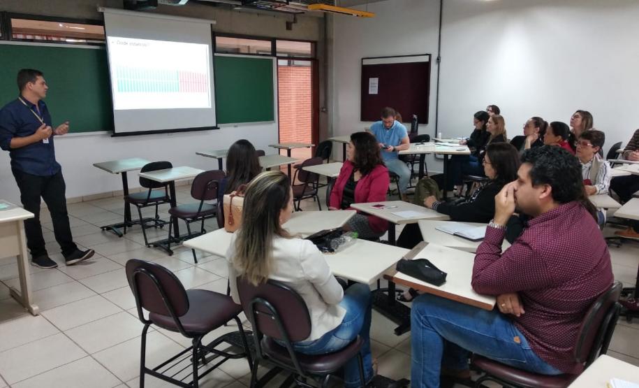 No dia 05 de setembro ocorreu mais um encontro formativo com as equipes gestoras do Núcleo Regional de Educação de Toledo na Pontifícia Universidade Católica – PUC Toledo. O encontro faz parte do programa de capacitação da Secretaria de Estado da Educação e do Esporte afim de auxiliar as equipes gestoras na condução dos programas de Tutoria, Presente na escola e a Avaliação diagnóstica ProvaParaná, além de ser uma oportunidade para a socialização de práticas bem sucedidas, comunicação entre departamentos do Núcleo e as escolas, de forma a sanar dúvidas, fortalecer o compromisso com a melhoria da educação, resolução de problemas no cotidiano escolar e renovação das práticas pedagógicas.