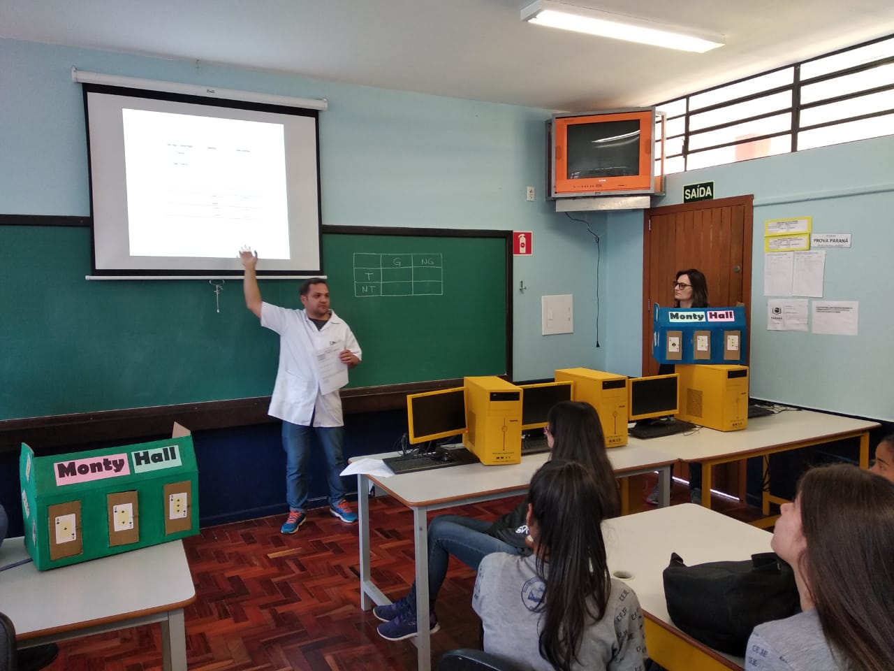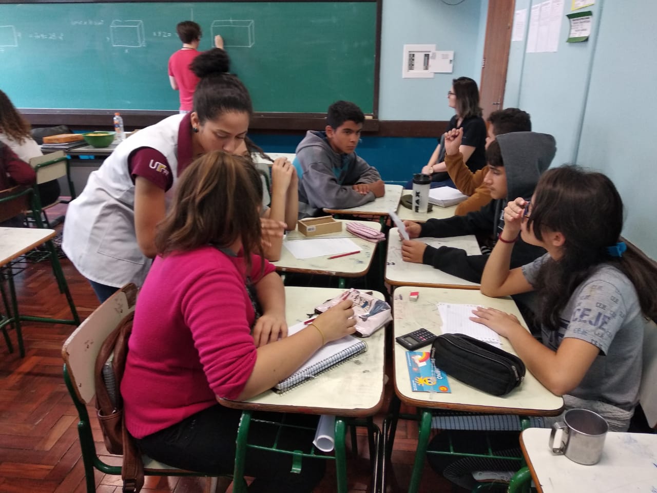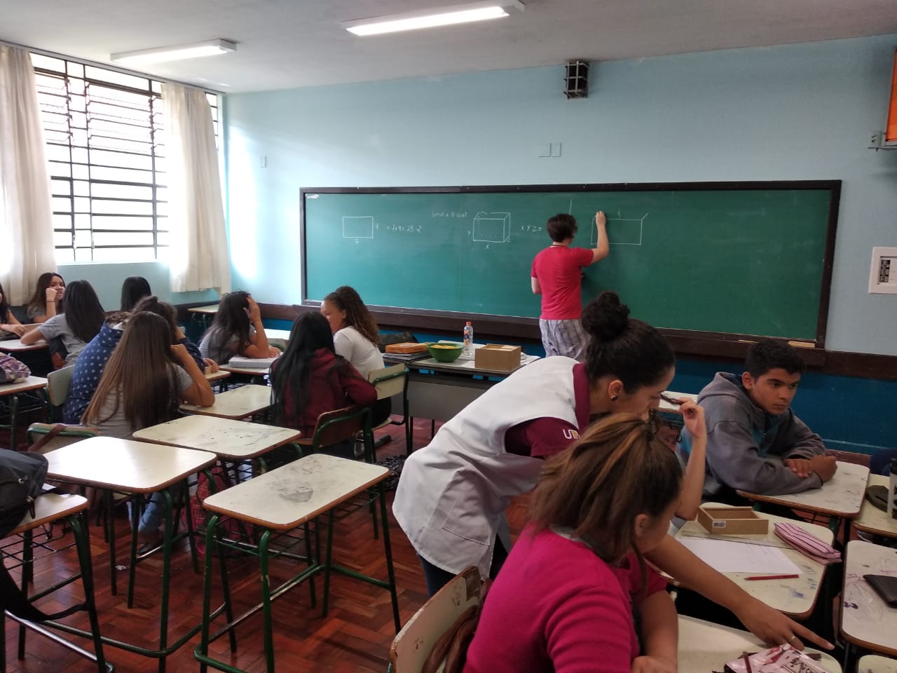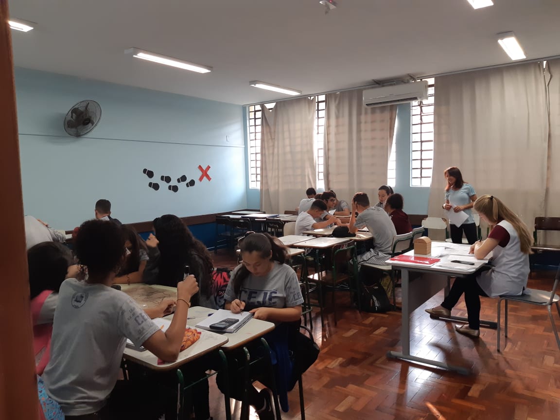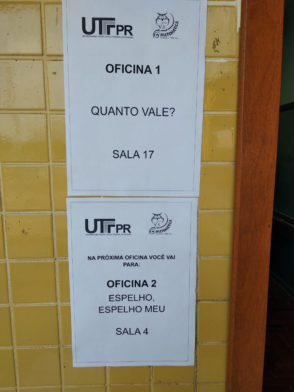 No dia 11 de setembro, nos três turnos, acadêmicos da UTFPR, do curso de Licenciatura em Matemática, supervisionados pelos professores coordenadores do Programa Residência Pedagógica e da disciplina de Estágio Supervisionado, aplicaram com alunos do Ensino Fundamental e Médio do Colégio Estadual Jardim Europa oficinas de Matemática.