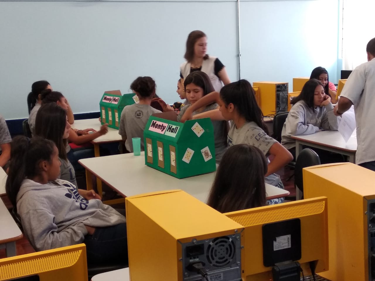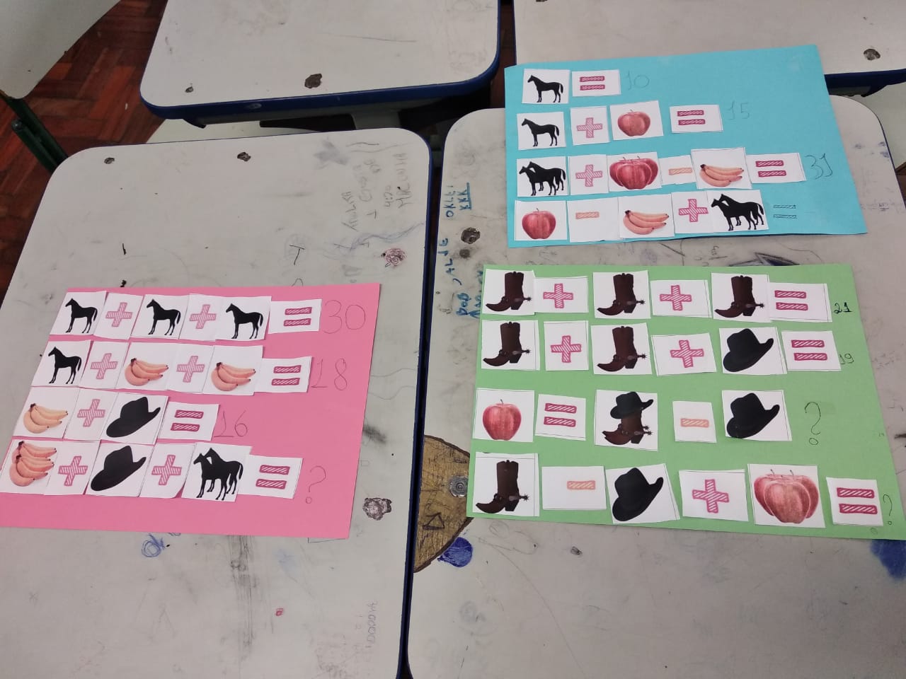 Já Marlon, Marcos, Thayara e Tawine, acadêmicos do 6º e 7º períodos da UTFPR, aplicaram a oficina de Enigmas denominada Quanto Vale? com Sistemas de equações do 1º grau, onde trabalharam imagens com enigmas para encontrar valores, para introdução de equações de 1º Grau para os 7º anos, e facilitar a compreensão dos alunos.