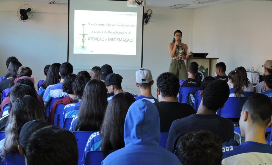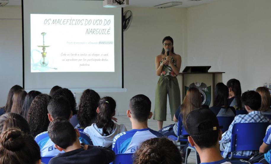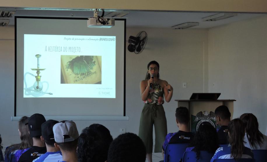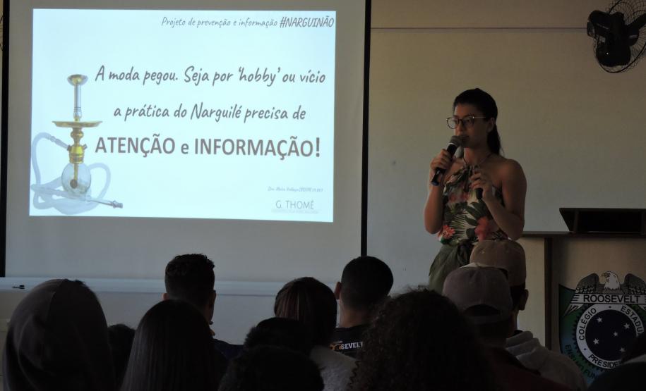 No dia 07 de maio, alunos do Ensino Fundamental e Ensino Médio do Colégio Estadual Presidente Roosevelt de Guaíra, participaram de uma palestra sobre os Malefícios do Uso do Narguilé ministrada pela Doutora Maira Valduga, fundadora do Projeto de Prevenção e Informação #Narguinão.