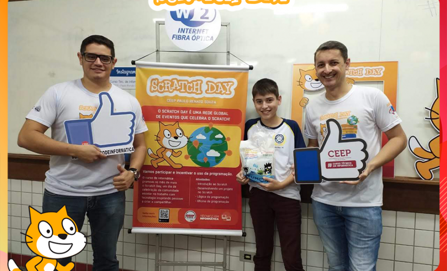 No mês de maio, no CEEP Paulo Renato Souza, Coordenadores e Professores do Curso Técnico em Informática realizaram pela primeira vez o Scratch Day onde mais de 100 alunos participaram. O Scratch Day é uma iniciativa da comunidade tecnológica e educacional para celebrar o incrível Software Scratch.