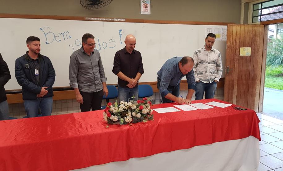 Na manhã dessa segunda-feira dia 13, ocorreu um evento nas dependências do Colégio Estadual Ayrton Senna da Silva, para assinatura do contrato referente ao repasse de dinheiro para reformas na quadra de esportes da instituição.