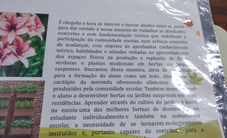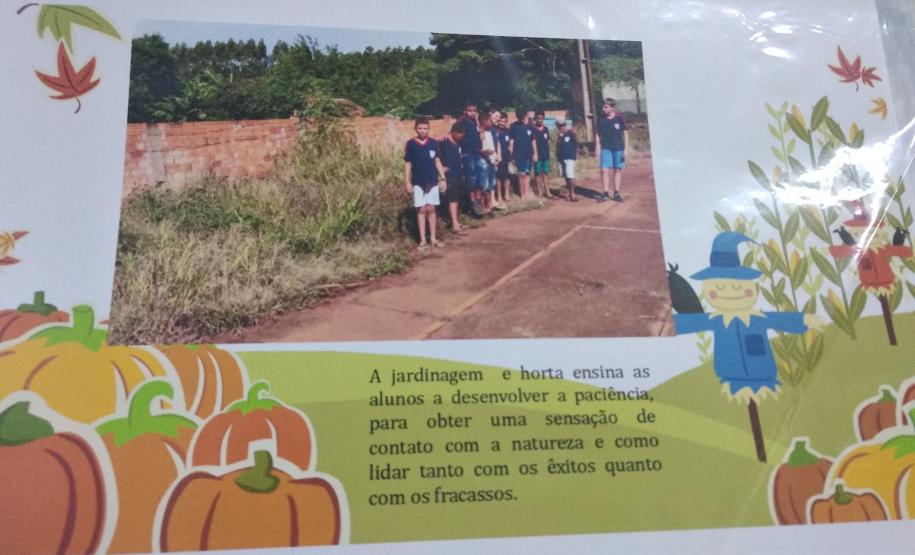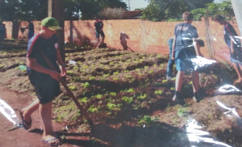 “Nosso componente, a gente ajuda a escola com os vegetais, os legumes, na hora do almoço para o município. A gente vai ter um projeto de pintar o muro ali, a gente cuida da horta lá embaixo, já tem bastante carreira pra gente plantar ainda, a gente também fez um sistema de irrigação que é um litro com um barbante cai três gotas por minuto. ”