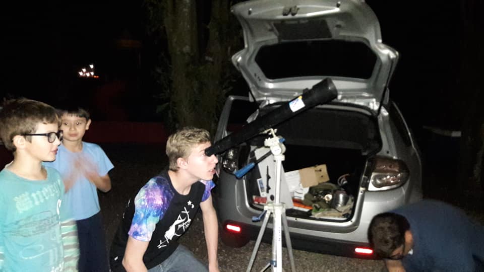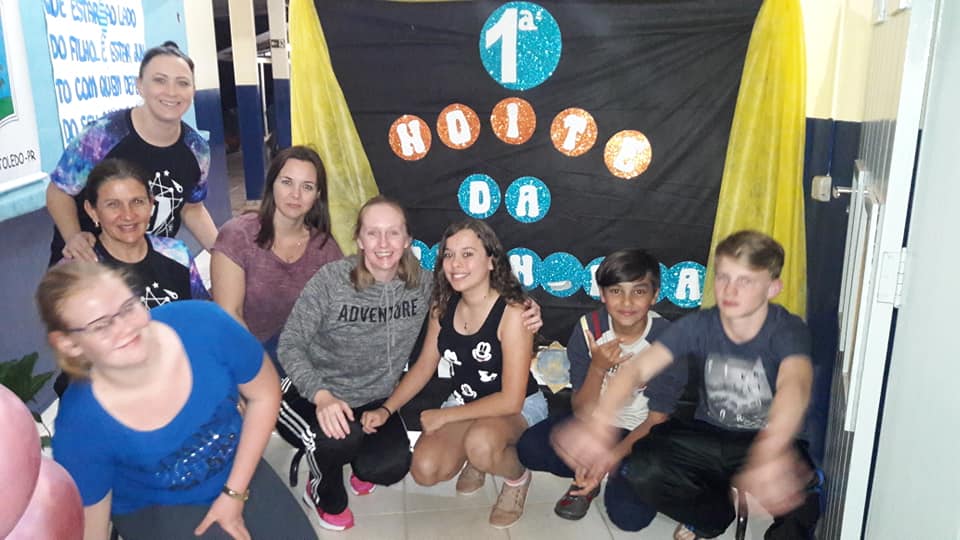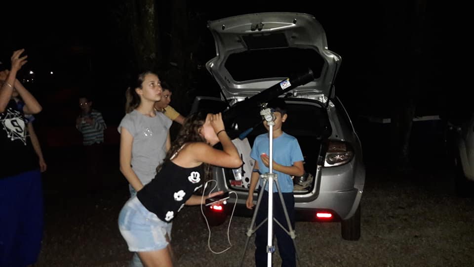 Dia 16 de agosto ocorreu a 1ª Noite de Astronomia da Escola Estadual do Campo Edwino Scherer do distrito de Dois Irmãos, do município de Toledo, alusiva a comemoração ao dia do estudante. Foi uma noite divertida repleta de conhecimento, com a prática de observação com telescópio, identificação das constelações, uso de aplicativos de astronomia, cinema, dentre outras atividades.
