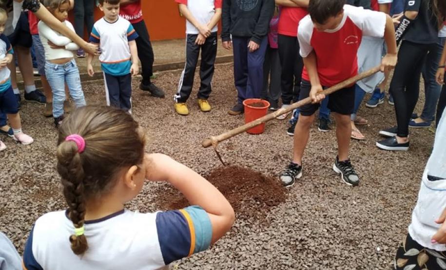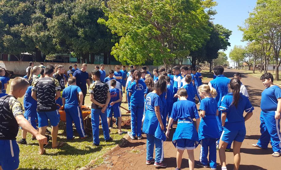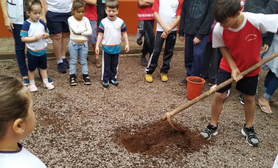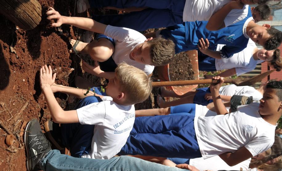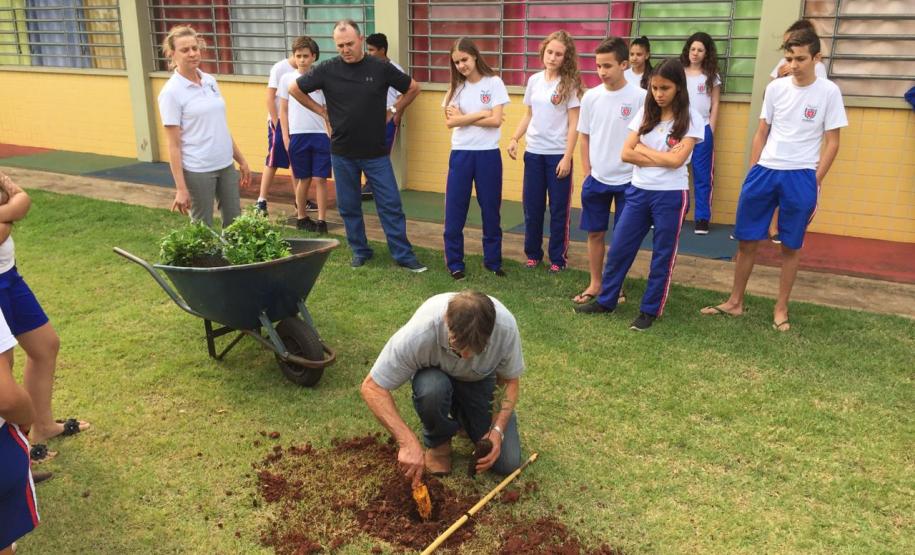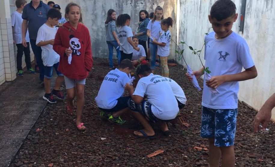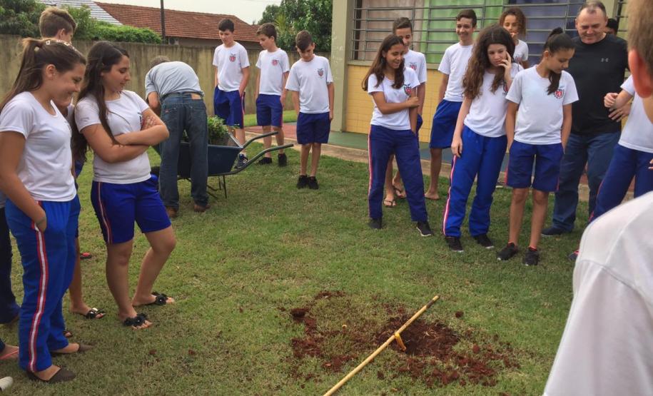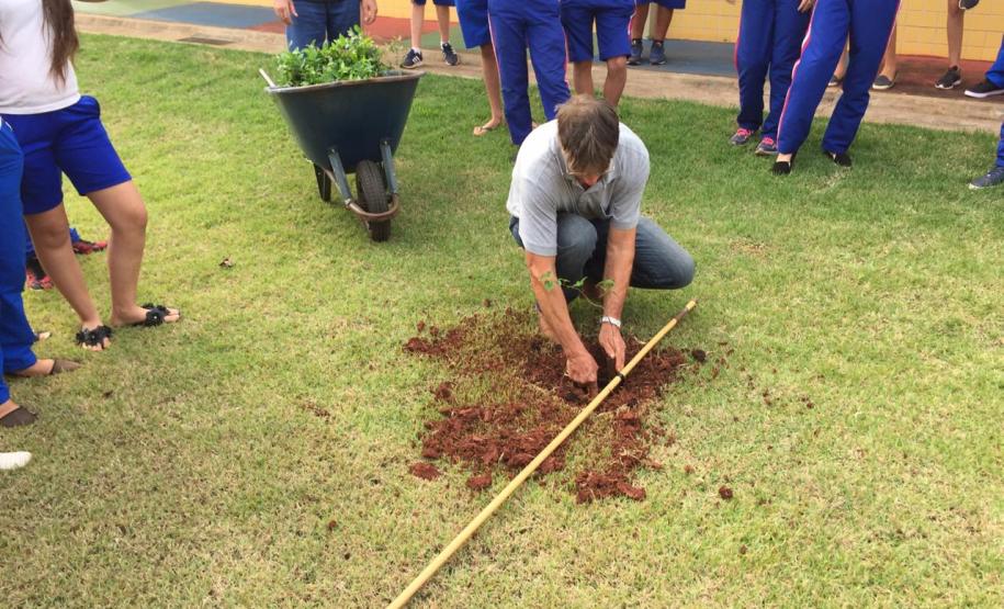 Cada escola definiu um padrinho para a ação que poderia ser diretor, pedagogo, professor, que teve a incumbência de repassar informações do programa e apoiar os alunos no plantio.