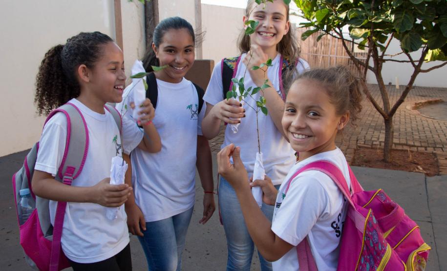 Foram distribuídas quase 500 mil mudas aos alunos do turno vespertino de 2,1 mil escolas estaduais e 400 escolas especiais. A ideia é que às 14h de hoje, em ato simbólico, 10 mudas fossem plantadas em cada instituição de ensino – ou em local definido pela direção das escolas. Em relação às demais mudas, os alunos são livres para levá-las para a casa e plantar onde desejarem.
