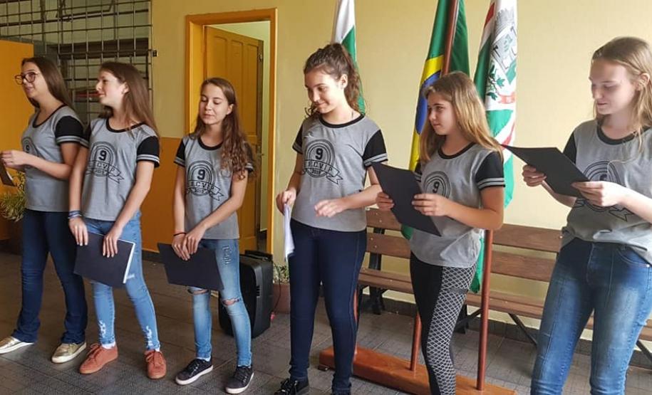 Os alunos do Colégio Estadual João Arnaldo Ritt do Distrito de Vila Nova, realizaram o 2º Recita CEJAR - concurso de escrita e declamação de poemas com o 7º ano B e A nos dias 02 e 06 de setembro. As poesias foram criadas na disciplina de Língua Portuguesa com tema livre e houve premiações para os melhores colocados como 5º, 4º, 3º, 2º e 1º lugares. Os poemas produzidos também serão enviados ao Concurso Edy Braun da Biblioteca Pública Municipal extensão vila pioneiro de Toledo, além de apresentadas a comunidade na noite cultural do colégio e publicadas no livro de poesias que fica disponível na biblioteca do estabelecimento.