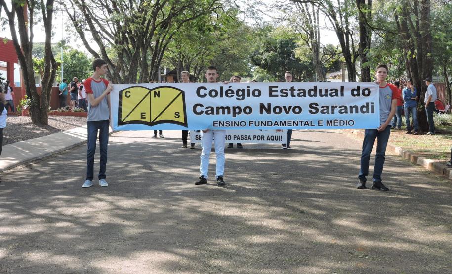 O Distrito de Novo Sarandi, por meio das escolas, organizou um Desfile Cívico na comunidade, onde equipes pedagógicas e alunos apresentaram à comunidade as diversidades de ações necessárias ao desenvolvimento do conhecimento dos estudantes. Após o desfile, houve um almoço e matinê a tarde. O evento contou com a participação de outras entidades atuantes no distrito e algumas autoridades. A Diretora do Colégio Estadual do Campo de Novo Sarandi agradeceu a comunidade pelo envolvimento nas atividades e por prestigiarem o evento.
