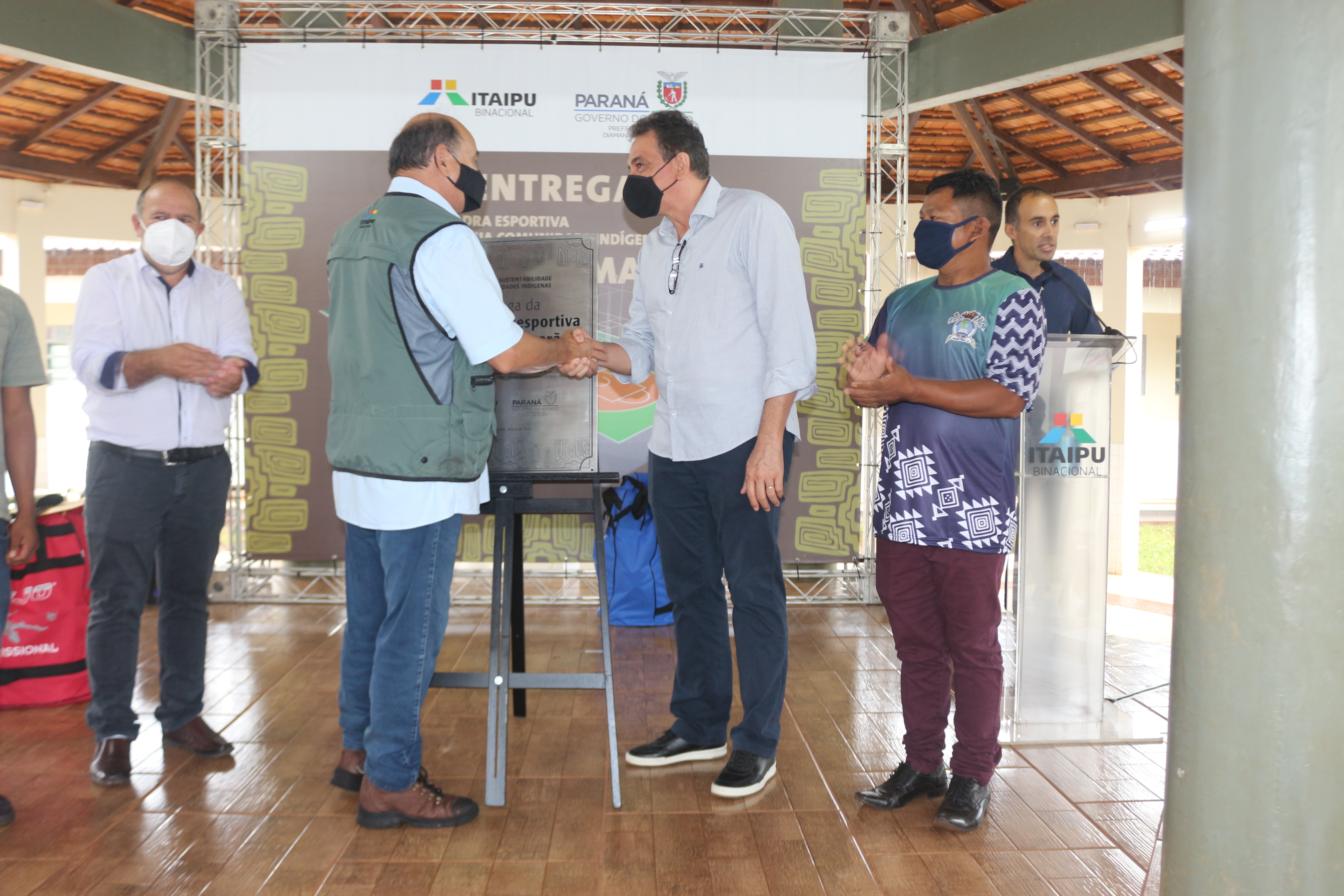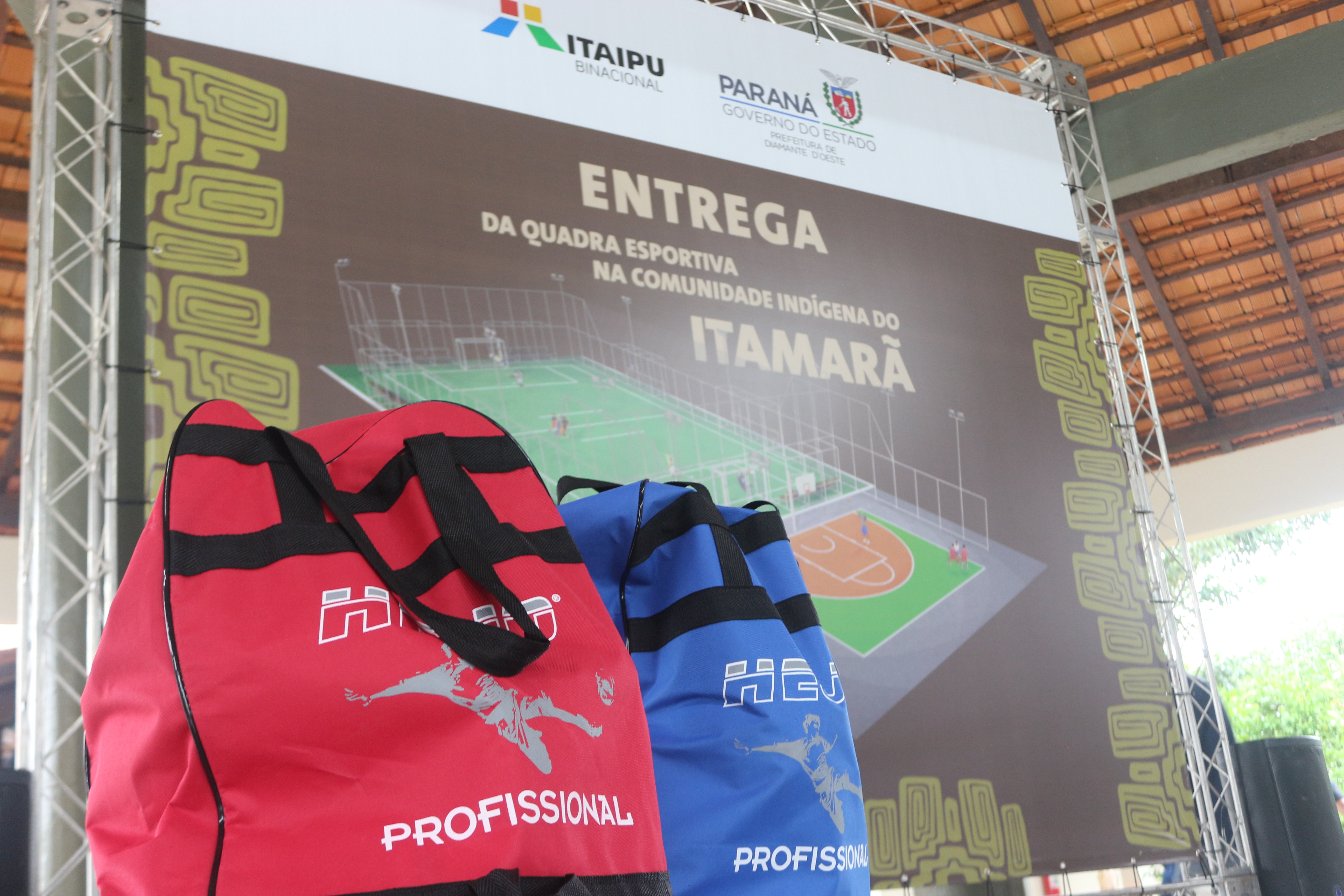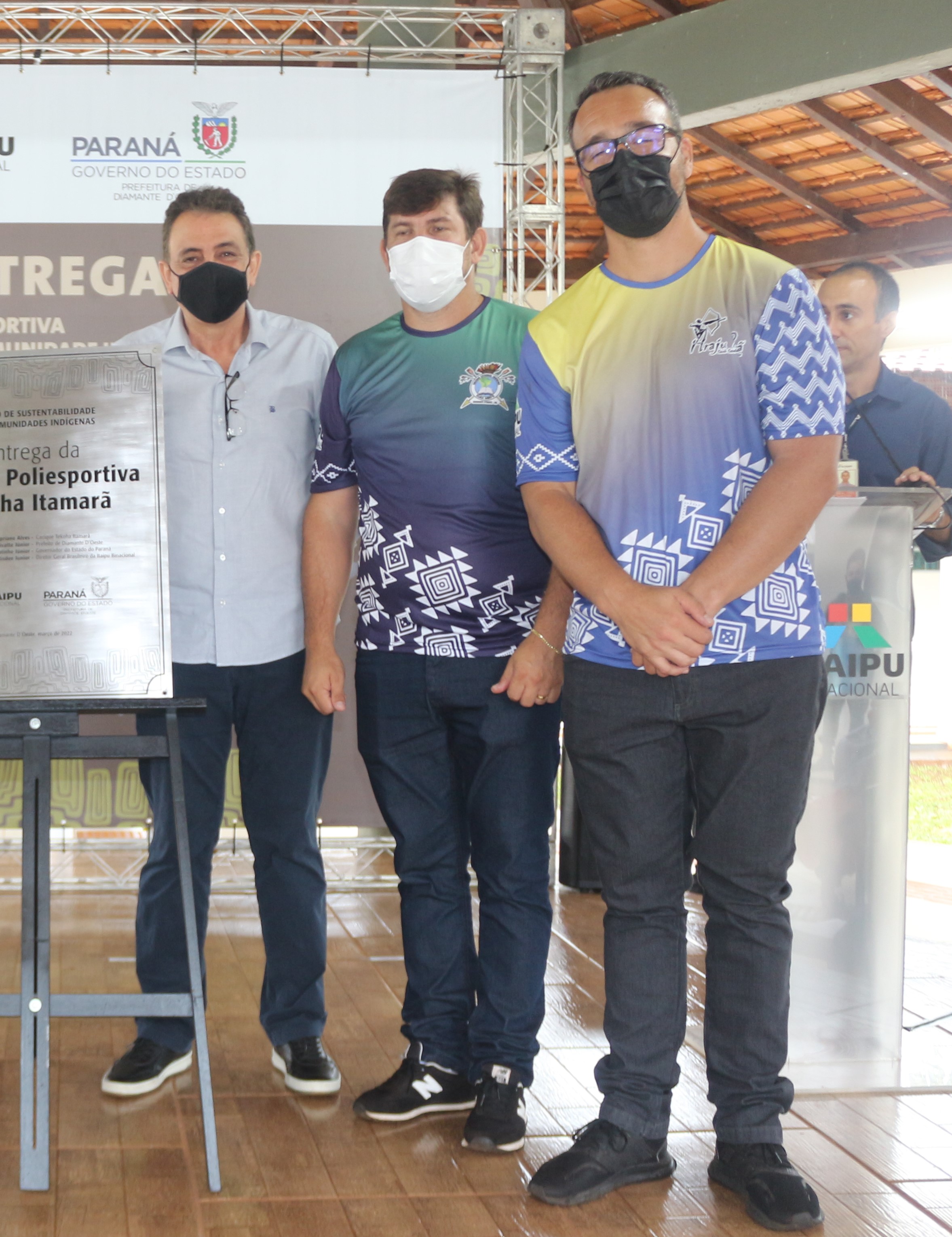 Na última sexta-feira (11) aconteceu na Escola Estadual Indígena Araju Porã em Diamante D’Oeste a cerimônia de entrega da Quadra Poliesportivo para Comunidade e Kits Esportivos, composto por bolas, bombas de ar e cones de treinamento. A cerimônia contou com presença do diretor de Coordenação da binacional, general Luiz Felipe Carbonell, representando o diretor-geral brasileiro, almirante Anatalicio Risden Junior; do prefeito de Diamante D’Oeste, Guilherme Pivatto Junior; do chefe do Núcleo Regional de Educação de Toledo, José Carlos Pereira Guimarães, representando o Secretário de Educação e Esportes, Renato Feder; caciques e membros das duas comunidades.