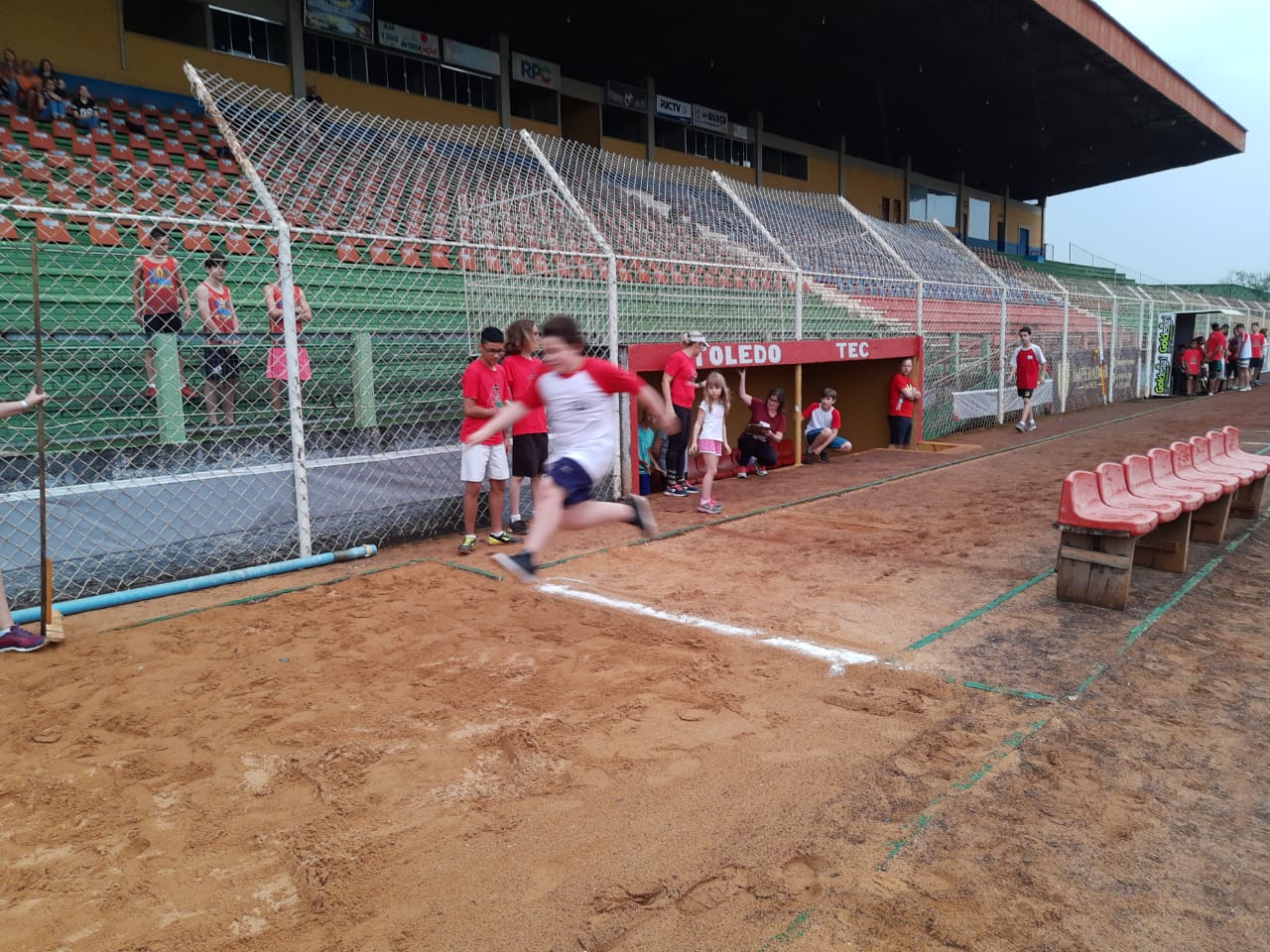 O evento envolveu alunos, pais, professores e comunidade escolar, que compareceram ao Estádio Municipal de Toledo para prestigiar os atletas mesmo com o tempo chuvoso. Os alunos participaram das modalidades de corrida, salto em distância e lançamentos de dardo.