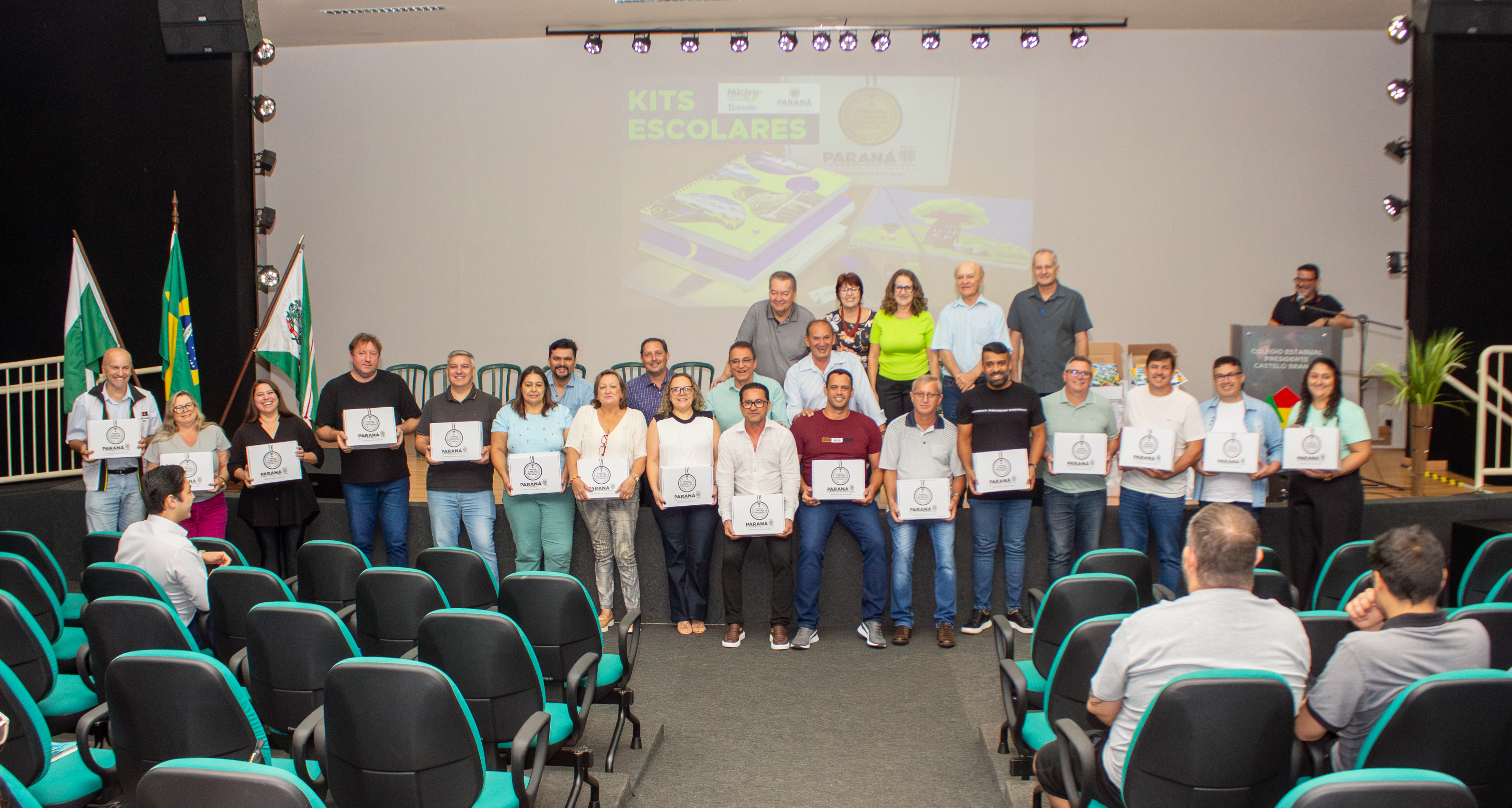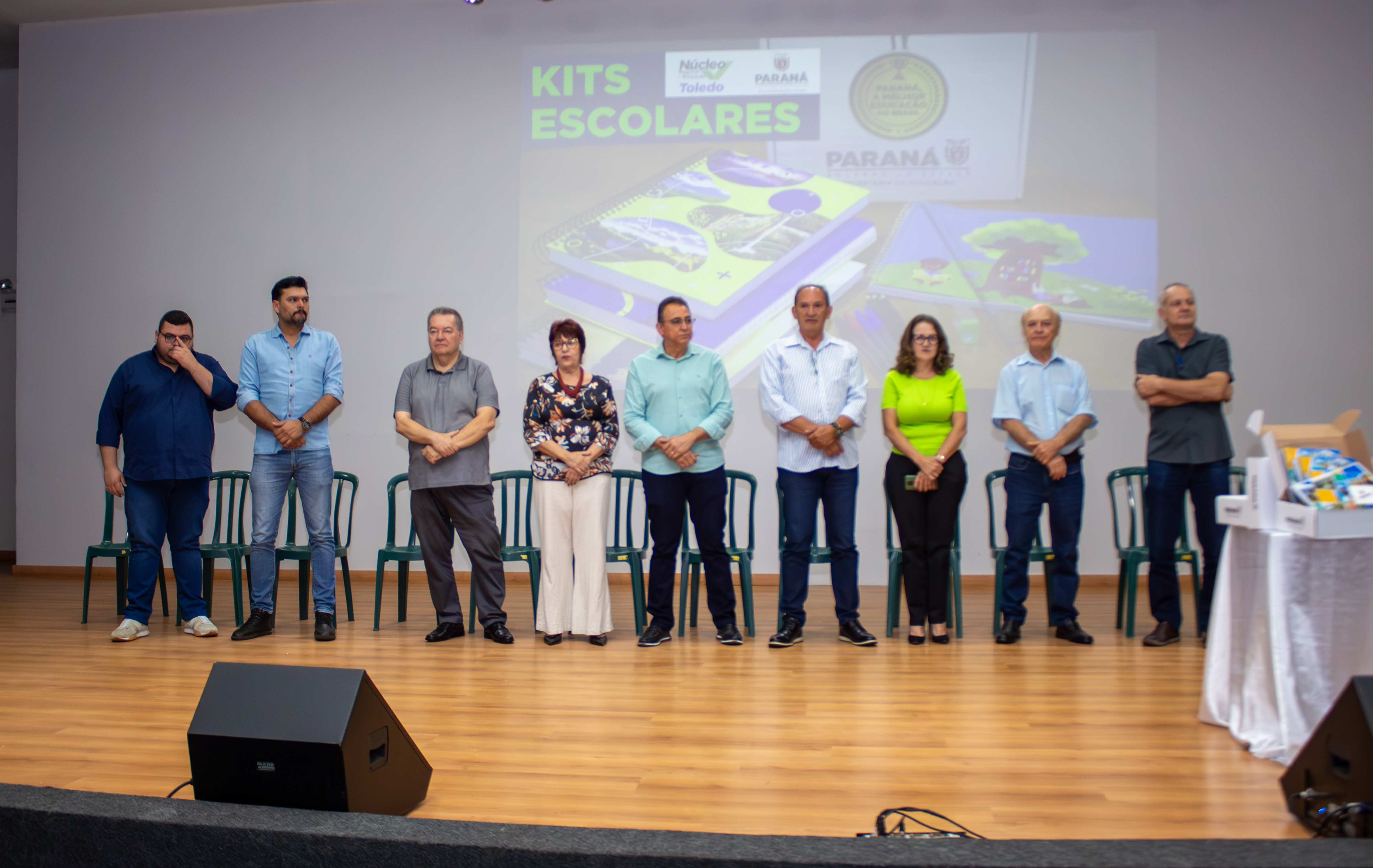 Na manhã da última quinta-feira (30), o Governo do Estado, por meio da Secretaria de Estado da Educação (SEED) e do Núcleo Regional de Educação (NRE) de Toledo, realizou a entrega simbólica dos kits escolares para diretores e diretoras das 90 escolas da rede estadual da região. O evento reuniu representantes de deputados estaduais, prefeitos, vereadores, secretários municipais de educação, além de autoridades, imprensa e equipe do NRE Toledo.