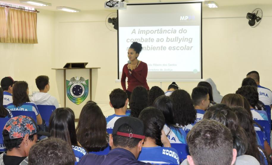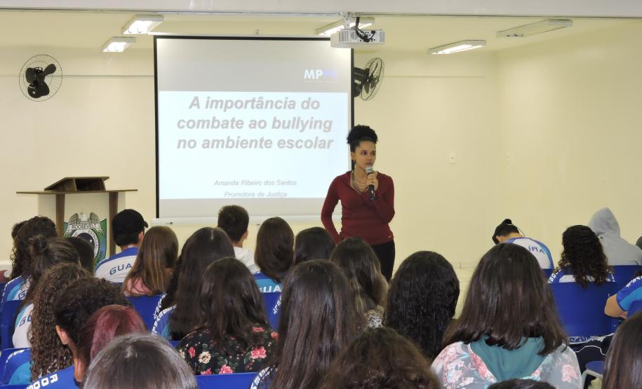Outra ação relevante nessa data foi a do Colégio Estadual Presidente Roosevelt que incentivou os alunos a elaborar cartazes de alerta sobre o Bullying que posteriormente foram colados nas paredes de todo o estabelecimento, e também organizou uma palestra com a Promotora do município Amanda Ribeiro dos Santos sobre a importância do combate ao Bullying no ambiente escolar.
