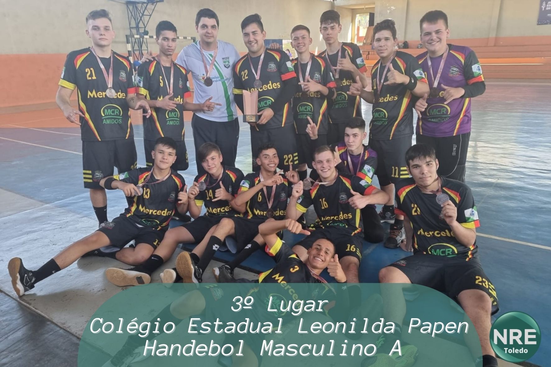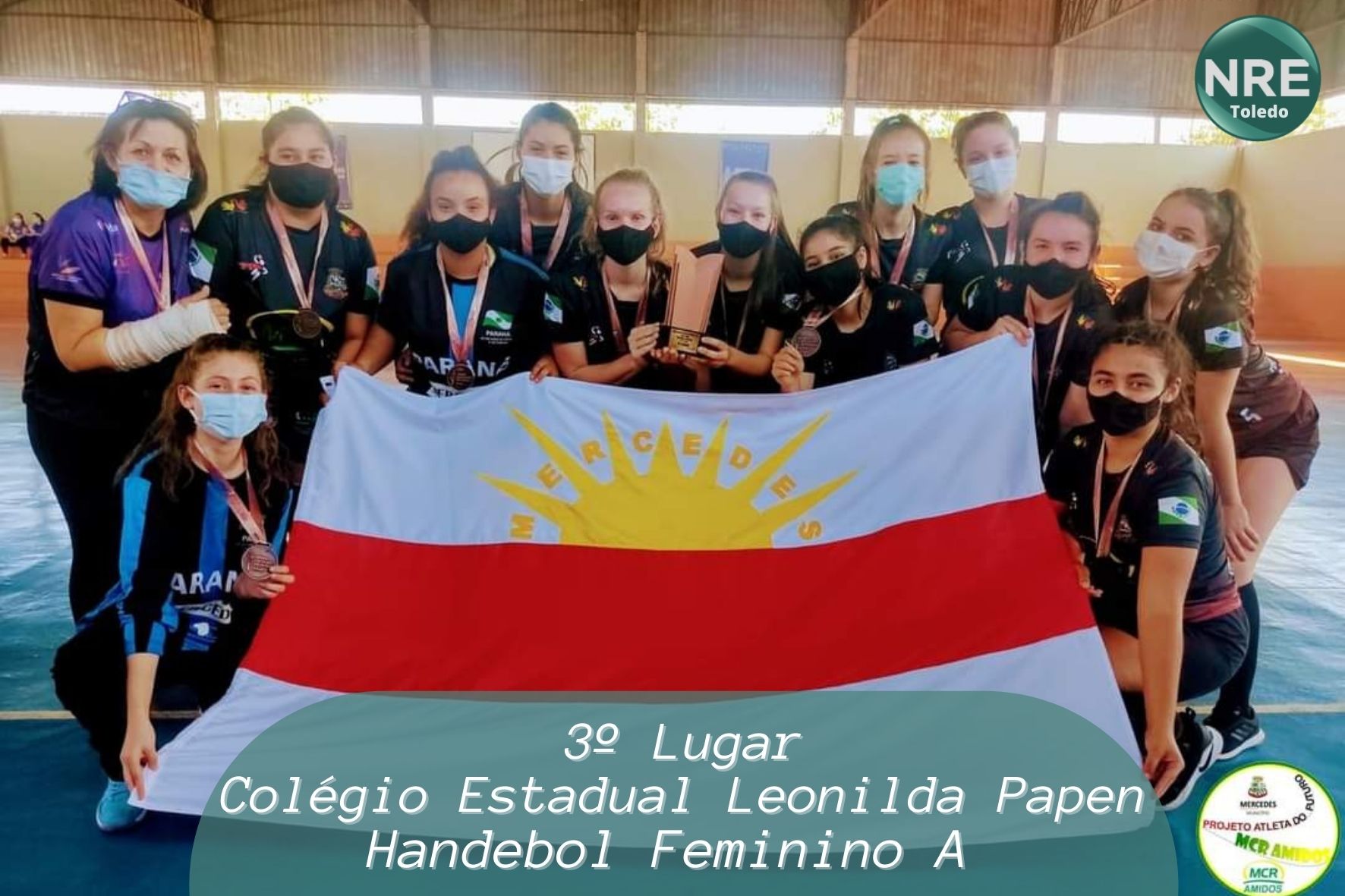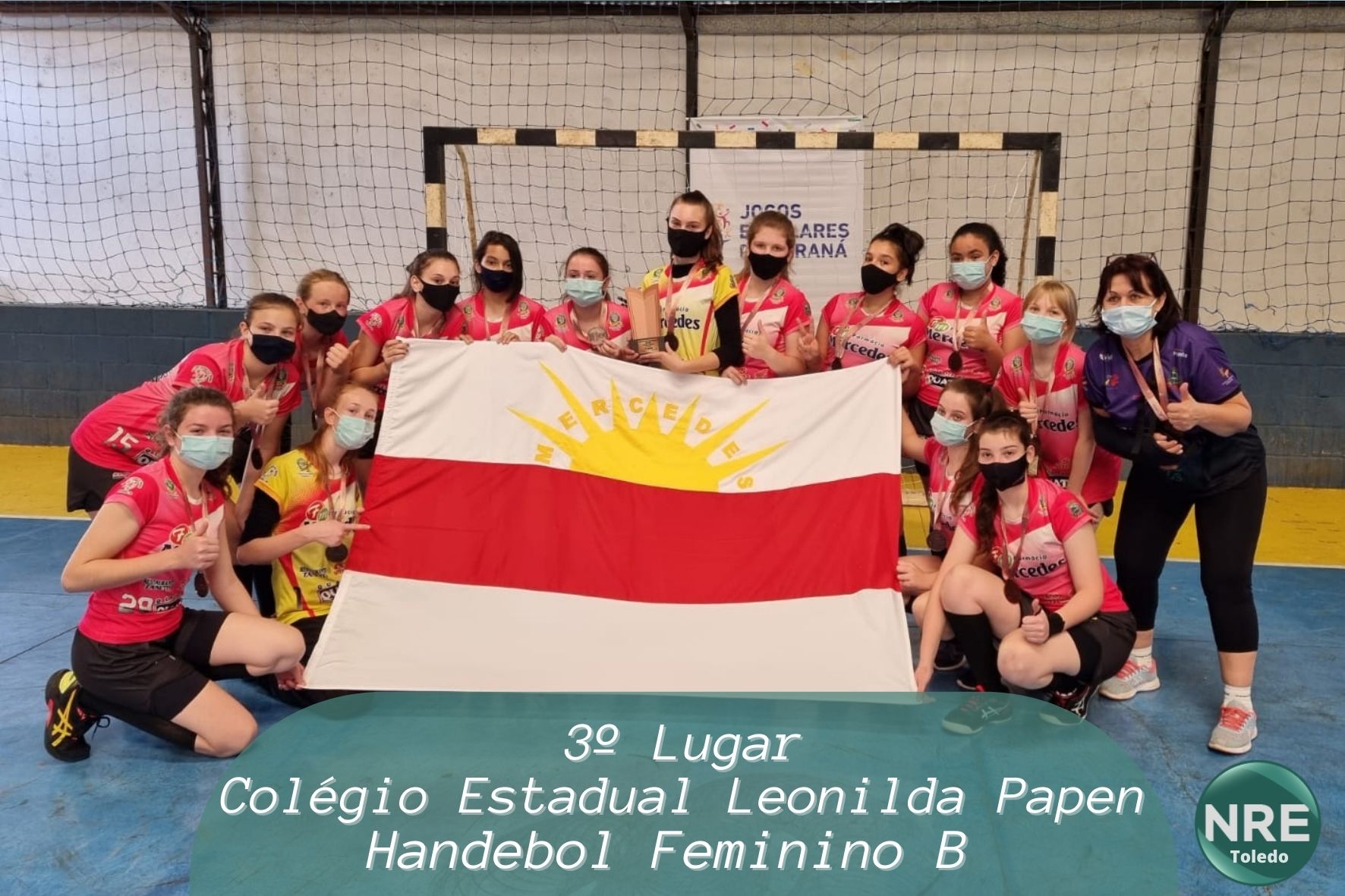 No final de semana (21 e 22) aconteceu mais uma etapa dos Jogos Escolares do Paraná 2021 – Fase Final, no município de Campo Mourão com a modalidade de Handebol. O NRE Toledo foi representado pelas equipes de handebol feminino A e B, handebol masculino A e B do Colégio Estadual Leonilda Papen de Mercedes e a equipe de handebol masculino A do Colégio Luterano Rui Barbosa de Marechal Candido Rondon.