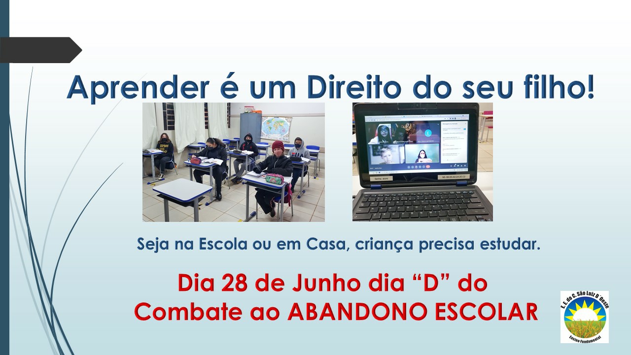 Ontem, dia 28 de junho foi o Dia D, dia de combate ao abandono escolar.