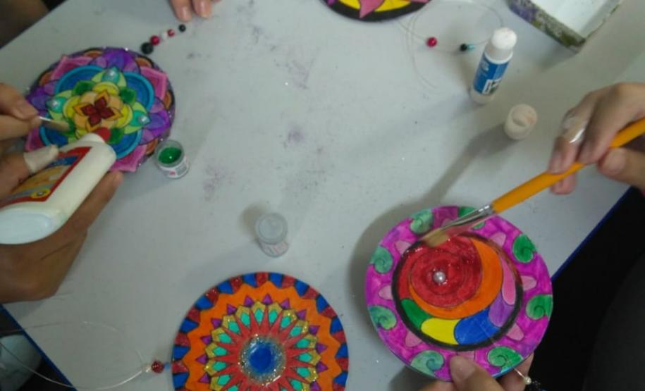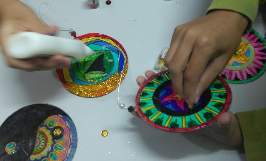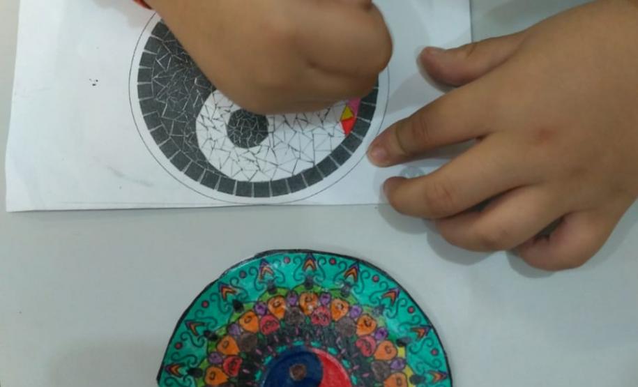 Ressaltou ainda que a ideia da mandala foi devido a um presente que ganhou de uma colega professora, no aniversário de 2018, que a instigou a desenvolver o projeto de confecção de mandalas para explorar as formas geométricas. Como os alunos não poderiam dispender de recursos caros para a confecção, visto que a maioria são oriundos de famílias de baixa renda, a professora começou a juntar CDs e DVDs velhos, para que durante o ano letivo de 2019 pudesse implantar a atividade prática. Para produzir diferentes imagens de mandalas circulares são usados além de CDs e DVDs, fio de nylon fino, miçangas, coloridas, cola glitter colorida, cola branca, botões, sementes, meias pérolas e pedrarias em geral.