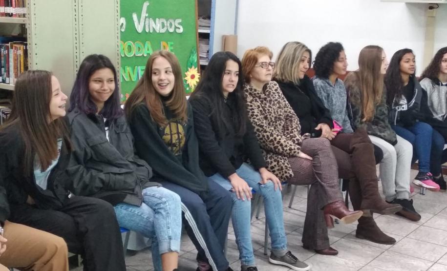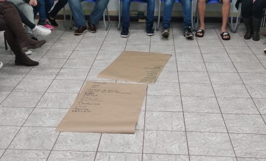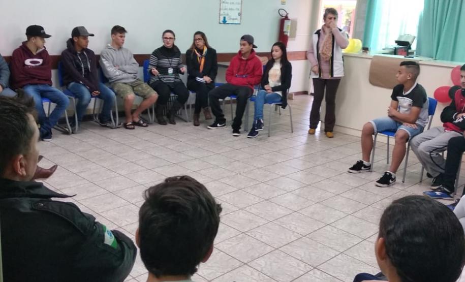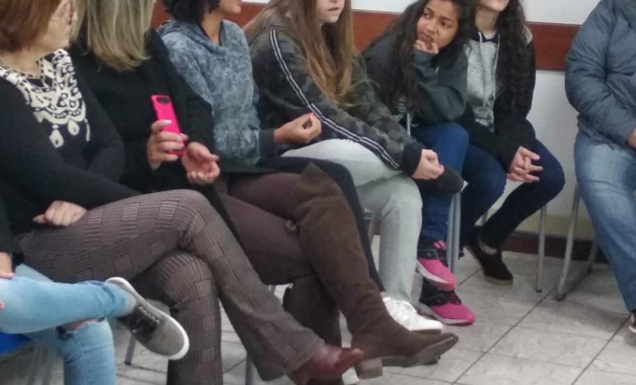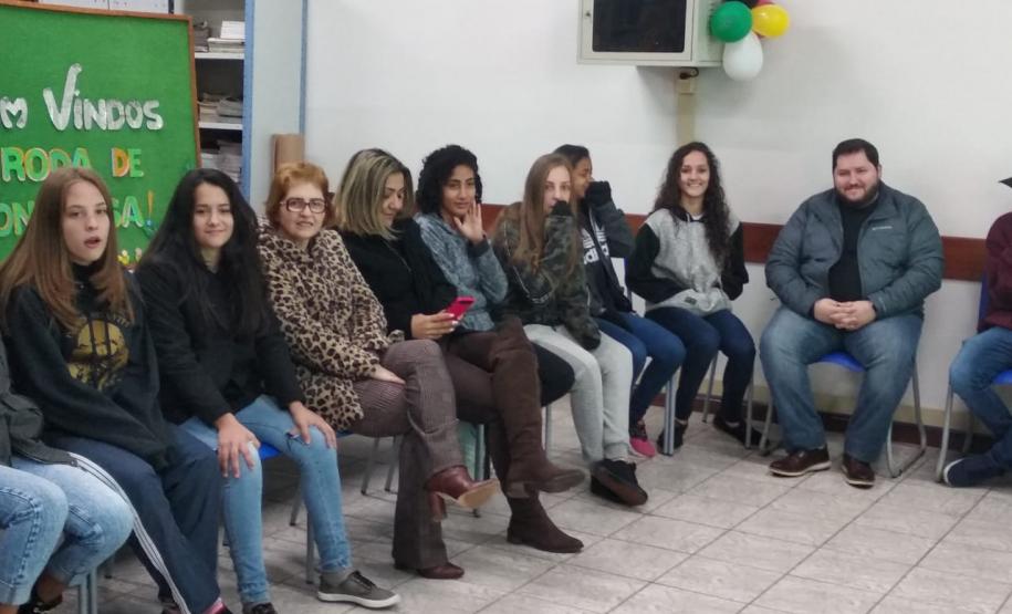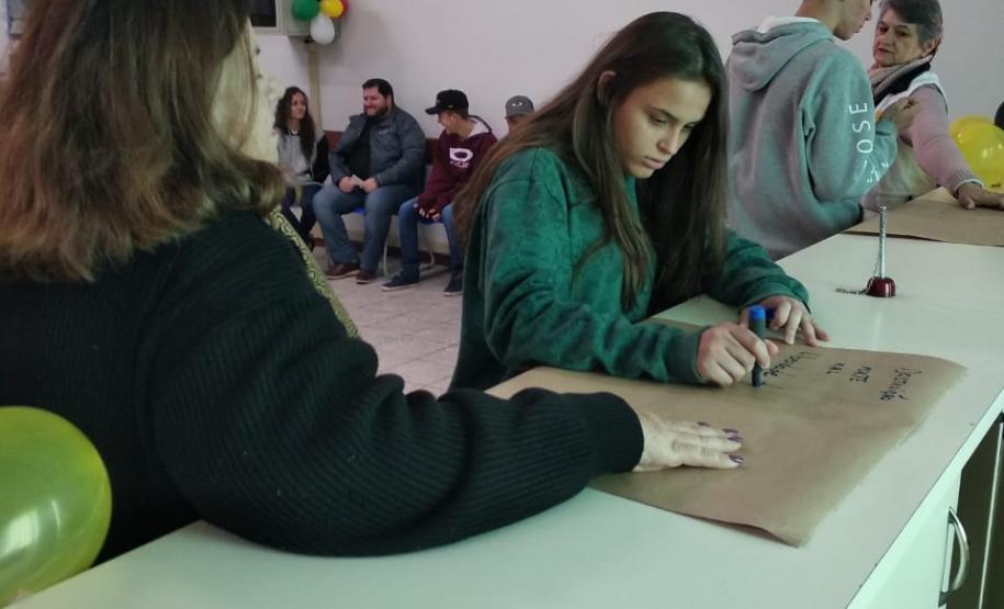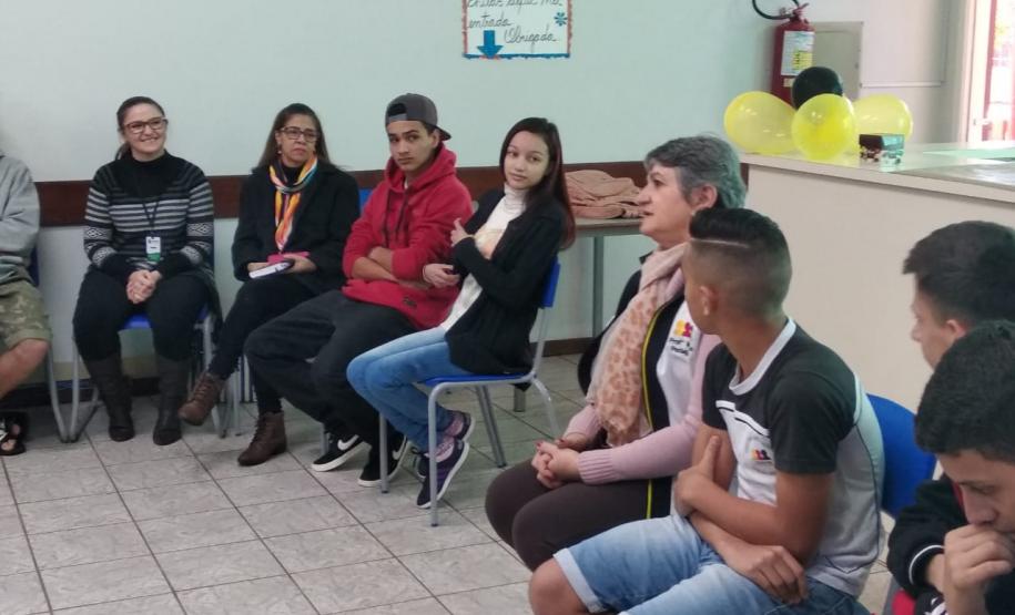 Nessa roda de conversa, a professora Marcia Regina Refosco e a Coordenadora Simone da Regional de Saúde, conduziram as atividades através da estratégia de pedir aos alunos que escrevessem em papel pardo palavras ou frases que vem à mente quando citado o tema drogas. A partir dessas palavras e frases então, as mesmas introduziram-nos as conversas a partir do concordo e discordo, fazendo-os explicar o motivo do posicionamento, suas opiniões e experiências. A conversa é aberta com apenas a regra de respeitar o que estiver de posse da palavra, sem julgamentos e preconceitos.