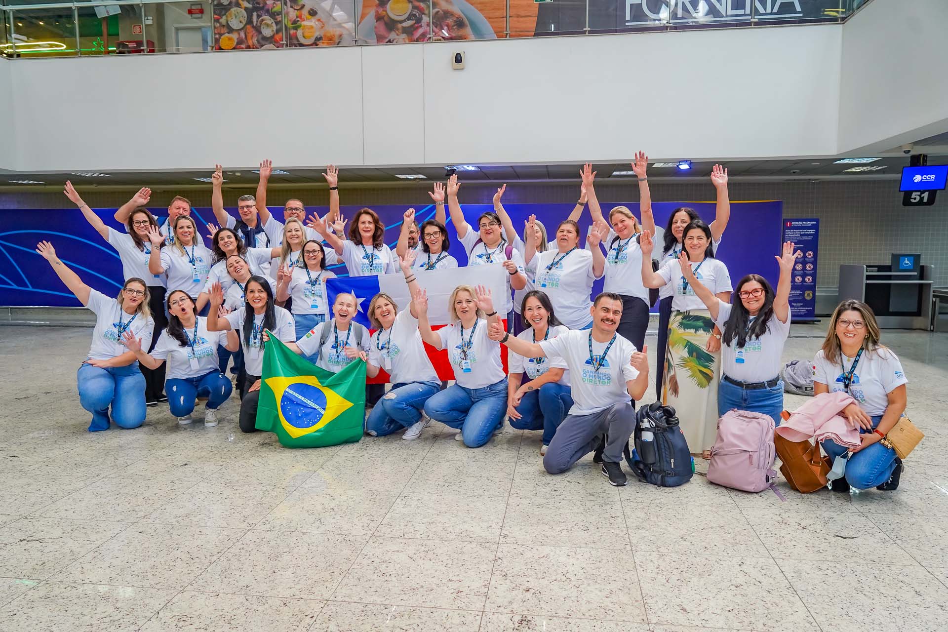 O Governo do Estado do Paraná, por meio da Secretaria Estadual de Educação do Paraná (SEED/PR), enviou na manhã deste sábado (21) mais um grupo de 100 gestores da rede estadual para a etapa internacional do programa Ganhando o Mundo Diretores. O embarque ocorreu no Aeroporto Internacional Afonso Pena, em Curitiba, com dois voos programados para 10h05 e 11h25, com destino a Santiago, capital chilena.